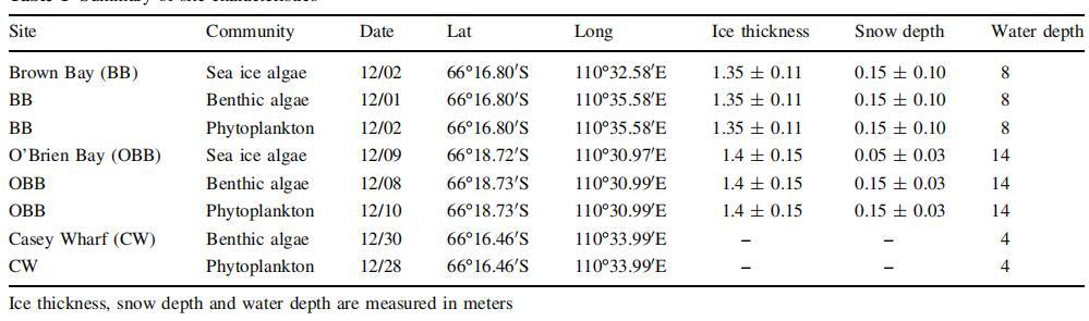 氣候變化可能會(huì)改變南極沿海海洋初級(jí)生產(chǎn)力不同組成部分的未來發(fā)展和重要性(Arrigo和Thomas,2004年)。隨著海冰融化和分解的提前,冰藻產(chǎn)量可能會(huì)減少。冰的早期消失可能會(huì)導(dǎo)致早春的浮游植物水華,但由于這些沿海水華在仲夏之前已經(jīng)變得營養(yǎng)有限(McMinn et al.1995,2000),它們的早期發(fā)展也可能導(dǎo)致更早的死亡。目前,最大限度的底棲微藻發(fā)育可能發(fā)生在冰爆發(fā)后底部光線增加,以及水華減少導(dǎo)致水透明度增加之后。由于這些群落能夠從沉積物中獲得再礦化的營養(yǎng)物質(zhì),它們不太可能受到營養(yǎng)物質(zhì)的限制,因此可能會(huì)更早地發(fā)育并持續(xù)更長時(shí)間。因此,在未來的南極沿海環(huán)境中,冰形成較晚、融化較早,底棲微藻初級(jí)產(chǎn)量可能會(huì)成為凈產(chǎn)量的一個(gè)更大組成部分。我們的研究初步嘗試量化海冰和底棲生物產(chǎn)生的程度,并估算這些成分和浮游植物的相對(duì)貢獻(xiàn)。這些數(shù)據(jù)將為評(píng)估未來的環(huán)境變化提供有用的快照。