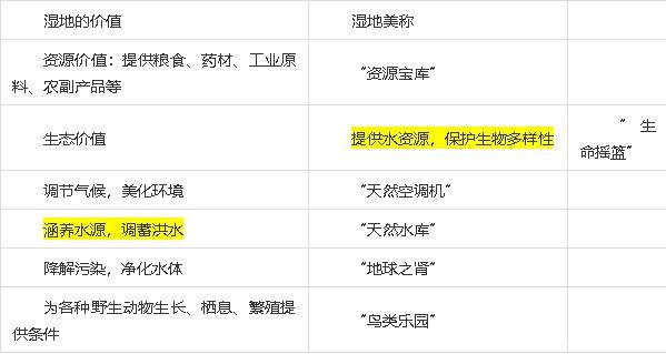①維持生物多樣性;②調蓄洪水;③提供豐富的農副產品;④航運價值;⑤旅游觀光。