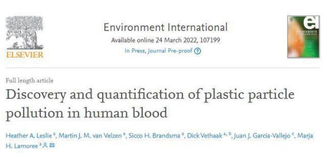 [1]Heather A.Leslie,Martin J.M.van Velzen,Sicco H.Brandsma,Dick Vethaak,Juan J.Garcia-Vallejo,Marja H.Lamoree,Discovery and quantification of plastic particle pollution in human blood,Environment International,2022,107199,ISSN 0160-4120.