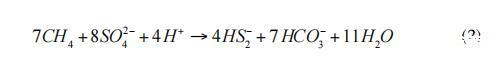 在一項新的研究中,Milucka等人(2012)提出了一種不同的反應(yīng)機制。在這一途徑中,ANME-2古菌通過產(chǎn)生元素硫作為中間產(chǎn)物單獨氧化甲烷,進一步與二硫化物或其他多硫化物反應(yīng)(式2):