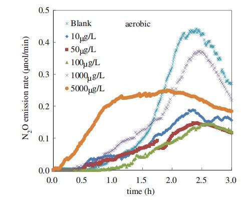 圖1不同Cu2+濃度下需氧階段N2O排放率(氣相)的比較