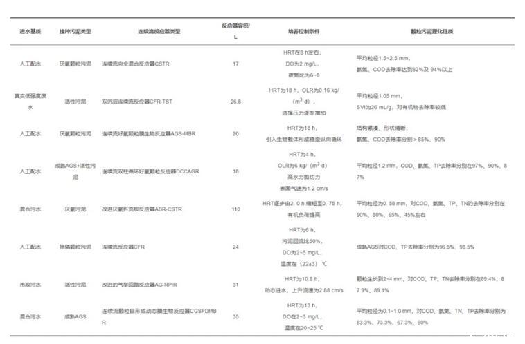 表1不同類型連續流系統中好氧顆粒污泥的培養