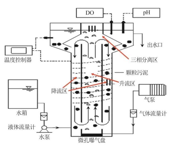 圖2連續流氣提式好氧顆粒污泥流化床反應器