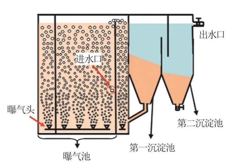 Jinte ZOU等設計了一種雙區沉淀池,采用真實低強度城市廢水作為進水基質,以氣提回流污泥方式實現連續流AGS造粒,如圖4所示。