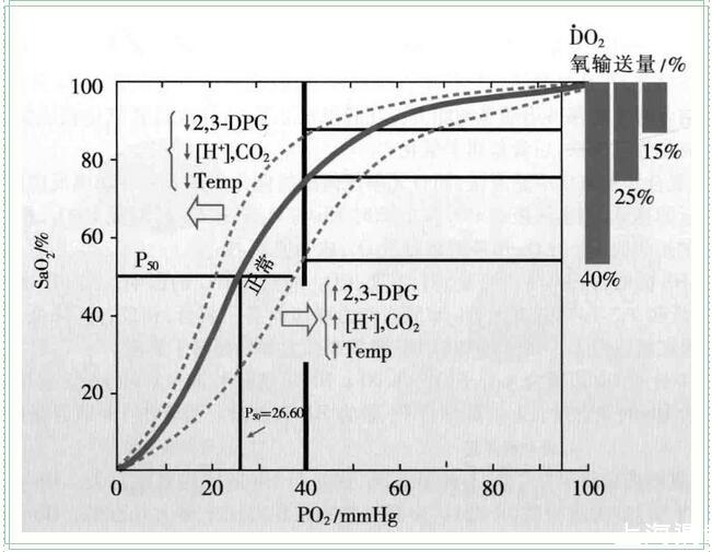 說明氧解離曲線右移,Hb和O2的親和力降低,O2易于釋放,有利于組織利用O2,有利于向組織供氧增加;反之為左移,說明Hb與O2的親和力增加,不利于O2在組織中釋放,組織仍可能缺氧,相反P50增加時(shí),SaO2雖然降低,但組織并無明顯缺氧。影響P50的因素很多,①P50增大的因素血液pH降低、溫度上升、PaCO2升高、紅細(xì)胞內(nèi)2,3DPG含量增高等均使P50增大,表示氧解離曲線右移,此時(shí)Hb和O2的親和力降低。②P50減小的因素血液pH升高、溫度降低PaCO2降低、紅細(xì)胞內(nèi)2,3-DPCG含量減少
