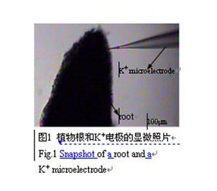 鉀是大多數植物活動細胞中含量最高的無機元素,鉀在碳水化合物代謝、呼吸作用及蛋白質代謝中起重要作用。另外,鉀離子還是調節細胞滲透勢、平衡膜電位的最重要組分。鉀離子進入還是逸出植物根系表面與外界環境中鉀離子的濃度有關。當植物根尖處于低鉀(<10μmol/L)溶液中時,用K+微電極可測到K+會從根的分生區和伸長區流出,從而使所處溶液中的K+濃度到50μmol/L(Newman等1987;Ryan等1990,1992)。Ryan等(1992)用Cl-微電極研究小麥對鋁敏感和耐鋁品種根內Cl-的流動時,觀察到在小麥根處于0.1 mmol/L的CaC12(pH4.5)介質中時,Cl-大量地從分生區流人介質中。