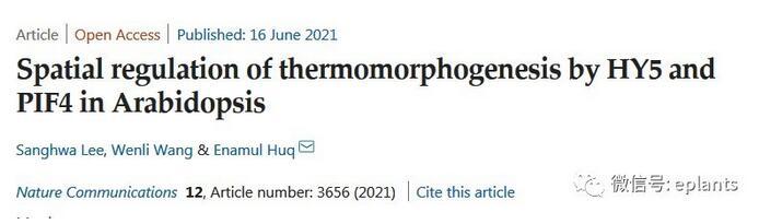 2021年6月16日,得克薩斯大學(xué)奧斯汀分校Enamul Huq教授團隊在Nature Communicaitons發(fā)表了題為Spatial regulation of thermomorphogenesis by HY5 and PIF4 in Arabidopsis的研究工作,發(fā)現(xiàn)植物利用SPA-PIF4-HY5模塊的不同組合來調(diào)節(jié)地上部和根部的熱形態(tài)發(fā)生。