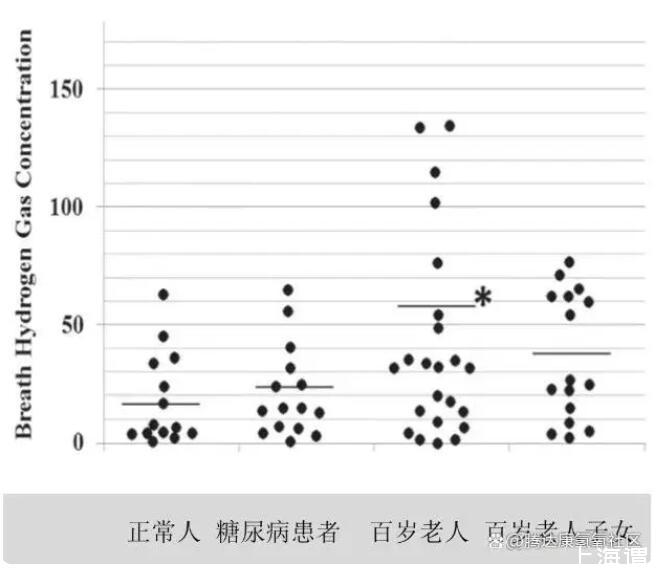 圖3-2百歲老人呼出氣的氫氣濃度分析(Aoki Y,2013)