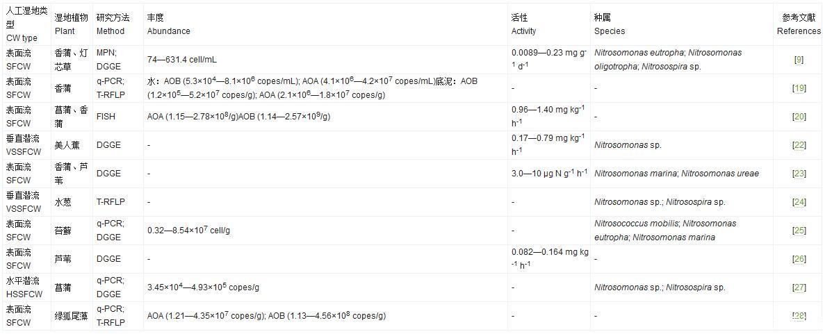 表1人工濕地系統中氨氧化微生物(AOA/AOB)的國內外研究概括