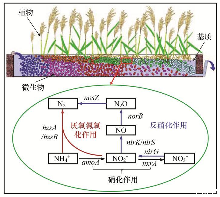 圖1人工濕地氮去除關鍵微生物過程及相應功能基因