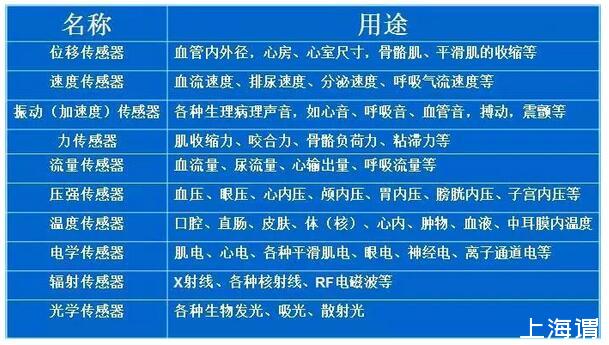 生物醫(yī)學(xué)用物理傳感器的分類和用途