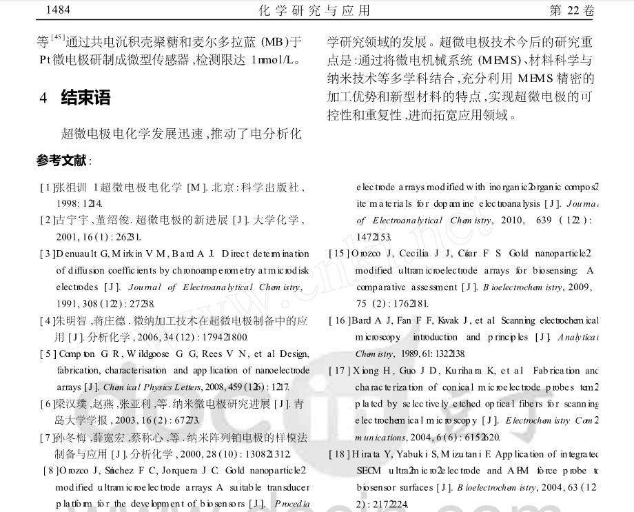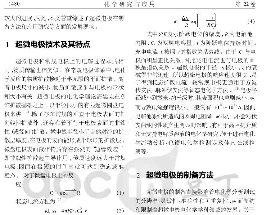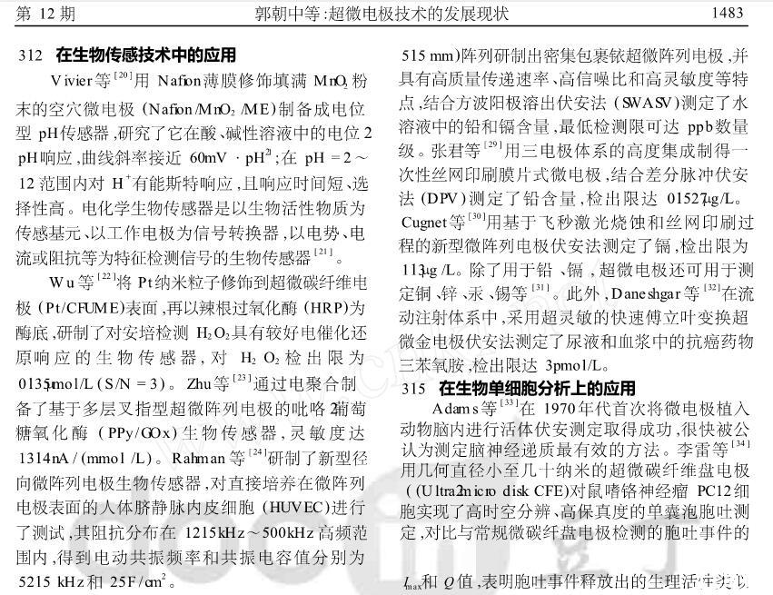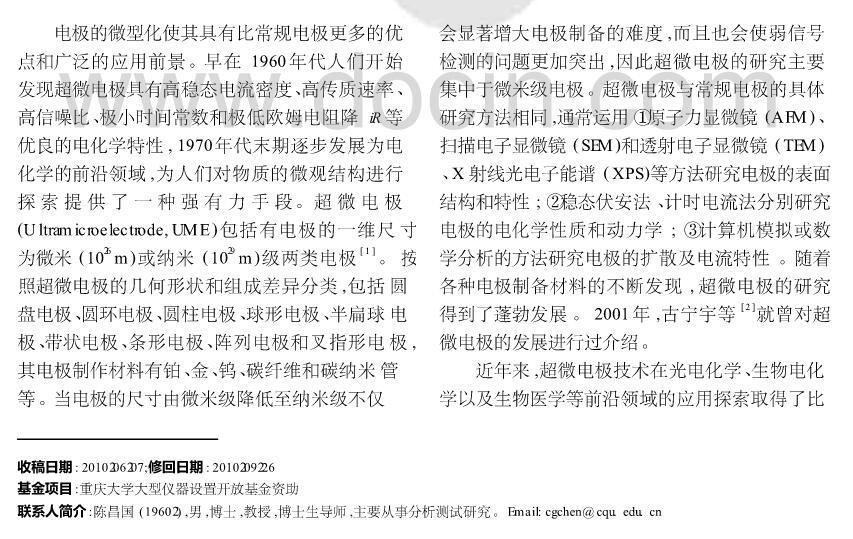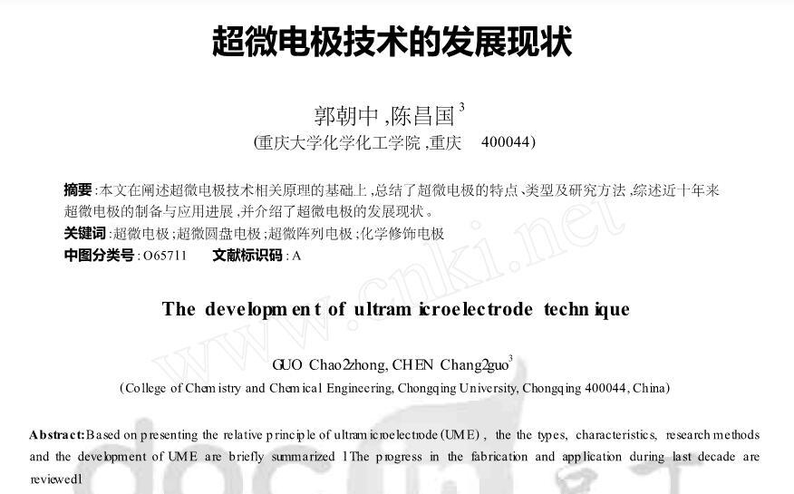 【摘要】:本文在闡述超微電極技術相關原理的基礎上,總結了超微電極的特點、類型及研究方法,綜述近十年來超微電極的制備與應用進展,并介紹了超微電極的發展現狀。