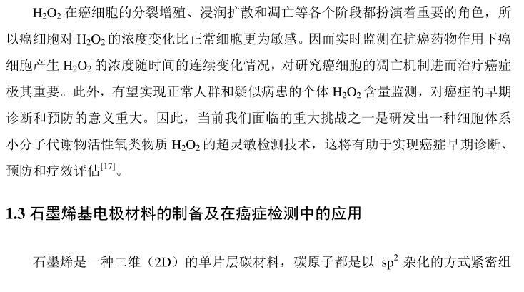 【摘要】:癌癥是當前致死率較高的一種疾病,而癌癥的早期診斷能增加患者生還和治愈的比例。電化學分析具有靈敏度高、分析速度快、儀器簡單的優勢,在臨床醫學領域得到廣泛應用。微電極技術作為電化學分析的前沿領域,為人們進行細胞水平超靈敏檢測癌癥標記物、探索癌細胞的生理現象提供了強有力手段,對癌癥的早期檢測和相關的療效評估有著重大的意義。開發研制微電極體系的核心是尋找合適的電極材料、設計新型的電極結構。石墨烯具有良好的生物相容性、優異的物理性能和化學性能,并能被廣泛用于構建各種不同結構、形貌可控的新型多功能電極,因而在電化學生物傳感器領域掀起了一股研究熱潮。鑒于對癌癥標記物超靈敏、高精確度和快速檢測的應用需求,以及目前國內外在電化學傳感、微電極技術和石墨烯功能材料等方面的研究進展,我們開發了兩種基于三維多孔石墨烯修飾碳纖維的功能微電極,并構建了可用于超靈敏檢測癌細胞釋放H_2O_2的電極系統,開展其在癌細胞電化學檢測中的基礎應用研究。
