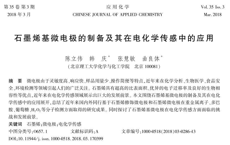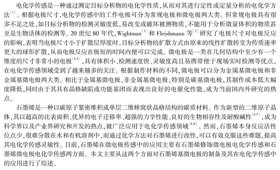 本文圍繞石墨烯基微電極的制備及其在電化學(xué)傳感中的應(yīng)用展開(kāi),總結(jié)了近年來(lái)國(guó)內(nèi)外同行基于石墨烯修飾微電極和石墨烯微電極在重金屬離子、多巴胺、葡萄糖、H2O2等分子檢測(cè)方面取得的研究成果。同時(shí)探討了石墨烯基微電極在電化學(xué)傳感方面面臨的挑戰(zhàn)和發(fā)展前景。