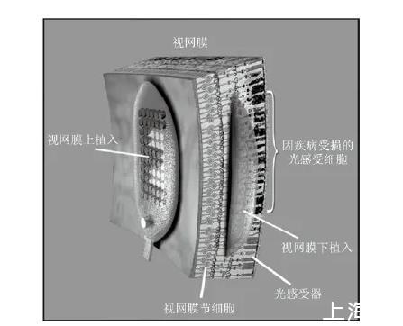 研究發(fā)現(xiàn),在這些疾病中,雖然將光信號轉(zhuǎn)化為電信號的視網(wǎng)膜光感受細(xì)胞層退化了,但是位于其后的水平細(xì)胞、雙極細(xì)胞和神經(jīng)節(jié)細(xì)胞等在一定程度上還是功能完好的。如果旁路掉光感受細(xì)胞,利用植入的假體將外部視覺信號轉(zhuǎn)化為電信號直接刺激內(nèi)部的視網(wǎng)膜,使患者產(chǎn)生光幻視,便可以達(dá)到一定程度的視覺恢復(fù)。這就是采用視網(wǎng)膜視覺假體治療該類眼疾的基本原理。