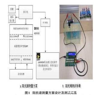 表面微電極阻抗譜測(cè)量采用圖1a所示的方案,采用美國(guó)AD公司的AD5933芯片完成阻抗測(cè)量,采用LABVIEW開(kāi)發(fā)上位機(jī)軟件,上位機(jī)主要負(fù)責(zé)串口通信、接收阻抗數(shù)據(jù)并繪制阻抗譜及保存數(shù)據(jù)文件。具體測(cè)量場(chǎng)景如圖1b所示,自制電極采用表面電極方式,實(shí)物如圖1b右上角所示。自制一組電極7個(gè),中心圓形為激勵(lì)電極,環(huán)形為采樣電極。電極型號(hào)定義規(guī)則為:激勵(lì)電極直徑D-激勵(lì)電極與采樣電極間隔距離-采樣電極寬度R。以D3-1P5-R2電極為例,表示該電極的激勵(lì)電極直徑3mm,激勵(lì)電極與采樣電極間隔1.5mm,環(huán)形采樣電極寬度2mm。該組電極的具體型號(hào)有7個(gè),分別是D2-1-R2、D2-2P5-R1、D3-1P5-R2、D3-1P75-R1、D4-1-R2、D4-1P5-R1和D4-1P25-R1。