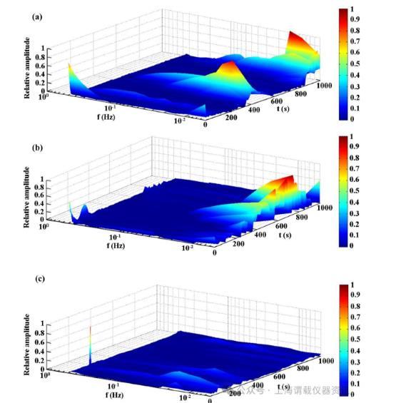 圖3、浸泡7天后的代表性希爾伯特光譜。a在無菌LB培養(yǎng)基中。b在野生型S.oneidensis MR-1菌株接種培養(yǎng)基中第7天。c在ΔmtrCBA菌株接種培養(yǎng)基中。