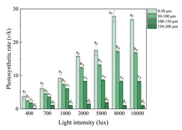 光被認為是影響微藻光合作用的關鍵因素之一,但光強度過高或過低可能對微藻增殖產生負面影響。由于生物膜中的生物質密集,光或營養物質在生物膜內的分布可能不均勻,導致生物膜內不同深度的代謝類型和代謝速率不同。