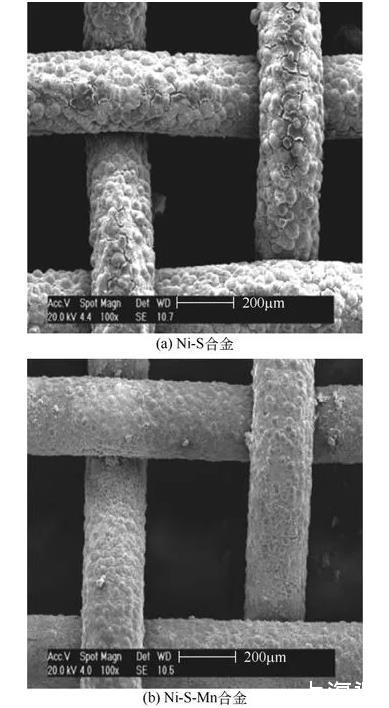 圖1 Ni-S合金及Ni-S-Mn合金表面形貌