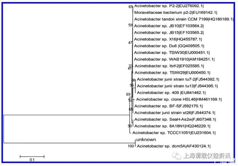 圖2、來自于國家生物技術信息中心基因庫分析的16S-rRNA序列的目標菌株與密切相關的細菌之間的系統關系。參考序列的數據庫加入數量在應變名稱后顯示。這些數字表明目前的引導支持是基于對1000個重新采樣數據集的鄰接分析。隔離帶的基因庫數量是KX928708。
