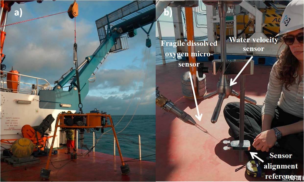 本項研究使用的是一個定制的著陸器,并為此提供了一個獨特的平臺,該平臺在促進新底棲生物或近海底科學研究的科學測量方面有廣泛的應用。這個復雜和多樣的著陸器基礎儀器包括溶解氧通量或“渦流相關”傳感器(丹麥unisense公司)、聲納可用于定位海底距離和輪廓銑,下水柱中的懸浮顆粒的測量和物質高分辨率水流速測量。傳感器套件由一個自動化的水采樣器,樣品的收集和樣品的保存設計了一個編程樣品容量和收集時間。這些海水樣品適合于測定接近海床區域的溶解無機營養素水平。內聯過濾器被用來評估每次采樣時微粒濃度。作為英國SBS計劃的一部分,研究人員在2014年3月至2015年9月利用“發現號”科學考察船進行了一系列科學考察。在這個對凱爾特海4個主要科考點進行了科學考察。研究使用的小型著陸艙的部署地點測試的數據提供了各種以海床為基礎的科學研究條件。