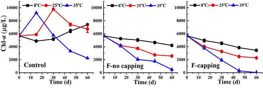 研究人員提出了在不同的溫度(8和25℃)下,采用工程學方法的可以使藻華向大型植物的轉變和藻類營養物質的轉移的過程變得更容易。結果表明,絮凝與封頂處理相結合,不僅可以去除富營養化水體中的銅綠微囊藻華,而且可以促進藻類的分解,使其成為水下大型植物(菹草)所需的生物量。絮凝封頂處理可引起藻細胞裂解。與對照組相比,絮凝-封頂處理組抑制了藻類的光合作用和呼吸速率,葉綠素-a的濃度顯著降低。15N示蹤研究表明,在8℃和25℃條件下,水下大型植物(菹草)可分別吸收3.3%和34.8%的藻類氮源。研究表明絮凝-封頂法可以促進藻類向大植物為主狀態的轉化,這個過程是水生生態系統修復的關鍵。