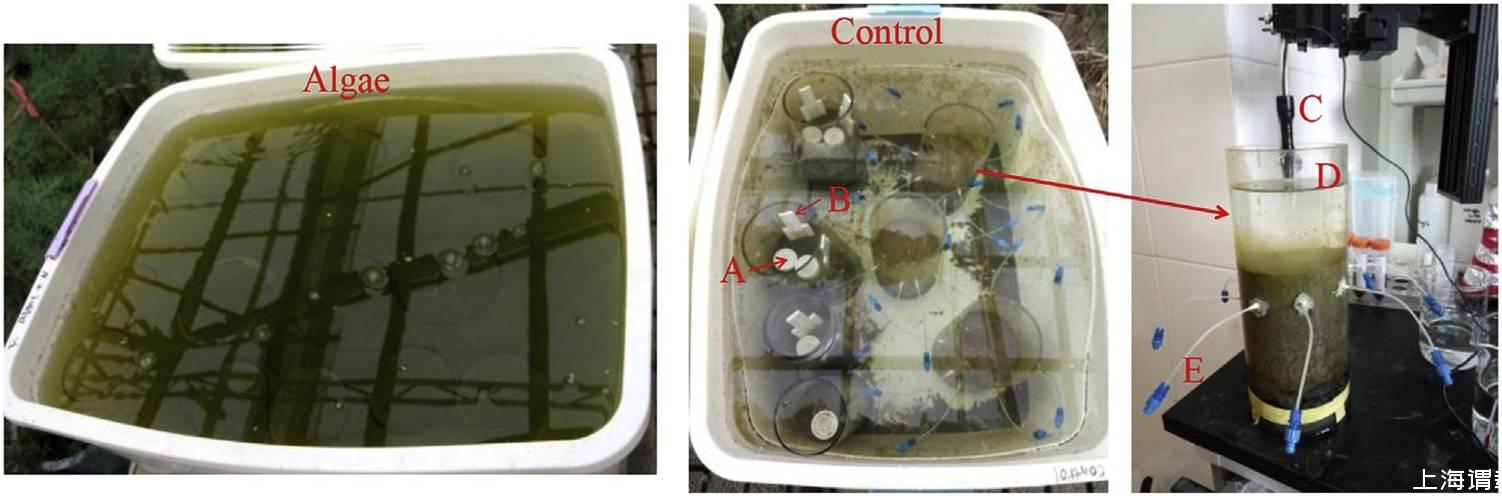本論文的研究人員主要利用吸附式取樣器(Rhizon)對有害藻華(HAB)在發(fā)育的不同階段期20mm表層沉積物中可溶性活性磷(SRP)和可溶性鐵(II)濃度在3-h時間間隔內(nèi)的變化進行了相關(guān)微觀實驗研究,了解有害藻華生長過程中沉積物中P受激釋放的過程和相關(guān)機制。