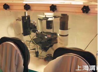 圖1、在培養箱內測量氧分壓的裝置顯示。氧微電極傳感器安裝在倒置的奧林巴斯CK41顯微鏡上,微電極使用了微操作控制臺進行控制。
