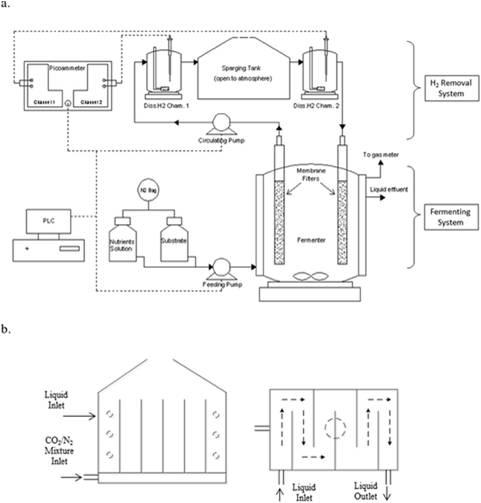 本論文研究了有機廢物發酵過程中的代謝途徑是如何收溶解的H2濃度控制的。最常見的非化石生產H2的途徑是通過可降解有機材料的發酵。目前H2的低產量是通過最簡單的糖的發酵實現的。從葡萄糖發酵中測試到的H2產率一般為2 mol/mol,僅為理論最大發酵產率(4 mol/mol)的50%,而使用純嗜熱培養物的研究已獲得H2的產量為4 mol/mol葡萄糖。但是目前還沒有報道比較通過控制溶解H2濃度所引起的發酵途徑的觀察和預測轉移的研究。研究人員提出了一種灌流系統,該灌流系統經過開發,可通過高度富集嗜熱嗜熱厭氧桿菌的培養物來控制葡萄糖連續發酵中溶解的H 2濃度,并提出了一套連續的實驗,在此條件下建立了一定范圍內溶解H2濃度的穩態條件,開發出一種結合了膜過濾和氣體噴射的灌注系統。