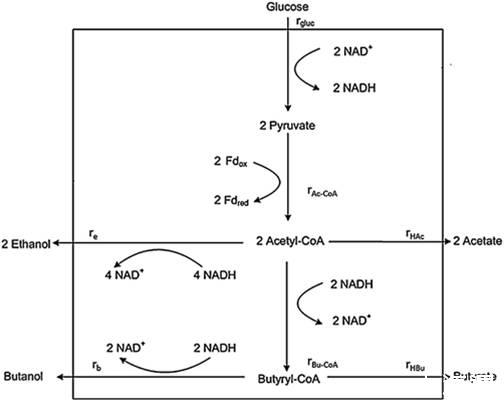 圖1、具有H 2調節位點的代謝途徑用于模擬葡萄糖的發酵過程示意圖。
