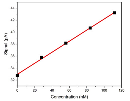 圖3、校準(zhǔn)與用于圖2中數(shù)據(jù)的微電極相同,但現(xiàn)在沒有前陽極預(yù)極化噪音等級(檢出限)。